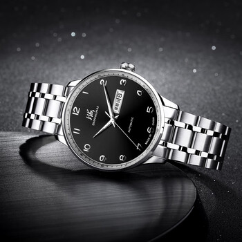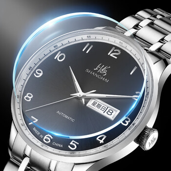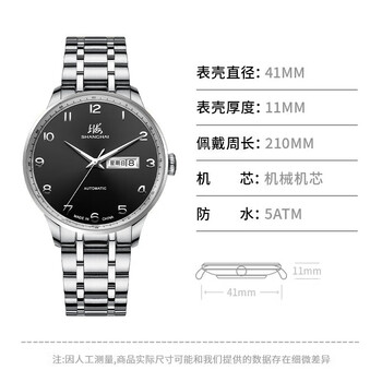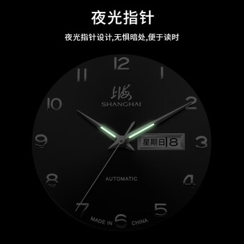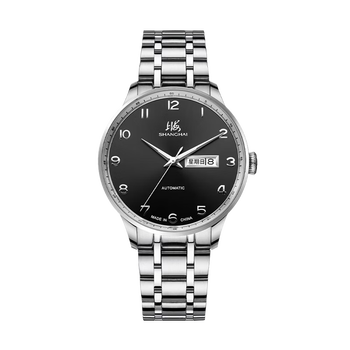上海(SHANGHAI)手表男款 男士自动机械表 国民系列 商务经典 黑盘钢带SH3013NB-1