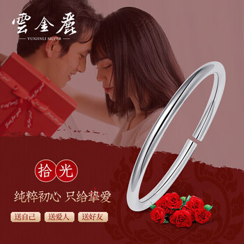 云金丽银手镯999足银男女款经典情侣手镯简约银饰银镯子情人节礼物