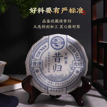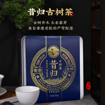 虎标中国香港品牌 普洱生茶 云南临沧昔归古树茶200g铁盒装年货送礼