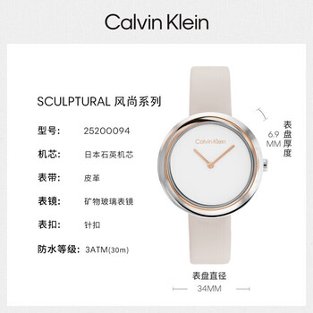 Calvin KleinCK手表小圆盘款皮带时尚石英女表女神节新年礼物25200094