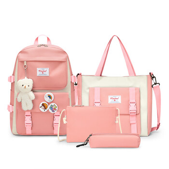 第九城(V.NINE)初高中生双肩书包女生痛包套装帆布背包小学生书包补习袋文具包