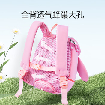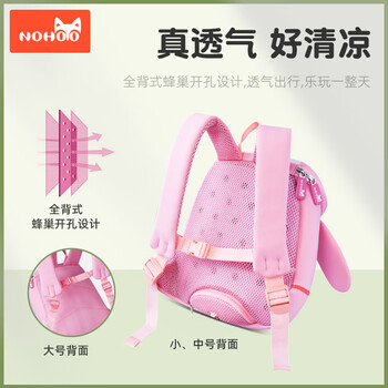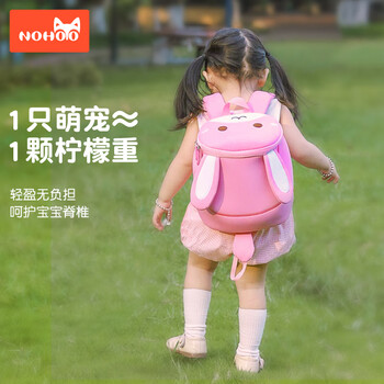 诺狐(NOHOO)儿童书包男女孩 幼儿园双肩背包卡通动物防走失绳小包粉兔子小号