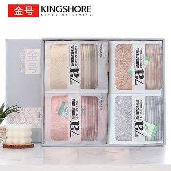 金号毛巾礼盒套装 7A级抗菌纯棉加厚洗脸巾 四条装76*35cm 120g/条