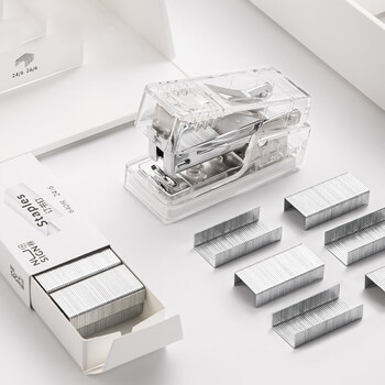 纽赛(NUSIGN)透明迷你订书机学生专用 办公轻巧便携订书器小号 赠830枚钉 NS083F