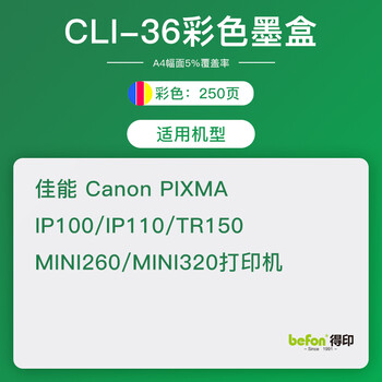 得印CLI-36彩色墨盒 适用佳能Canon PIXMA IP100 IP110 TR150 MINI260 MINI320便携式打印机墨盒