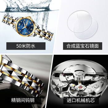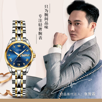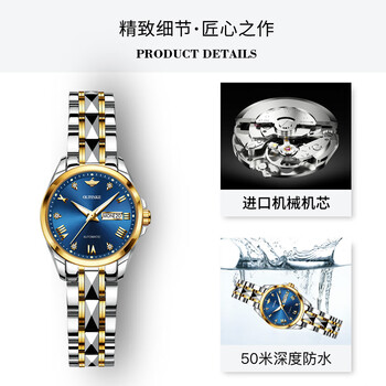 欧品客手表女士机械表商务日历夜光防水生日礼物送女友瑞士认证品牌腕表