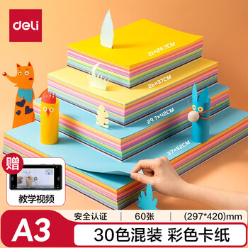 得力(deli)【开学文具】30色60张A3硬卡纸彩纸 加厚150g卡纸剪纸手工折纸绘画美工手绘纸 儿童生日礼物