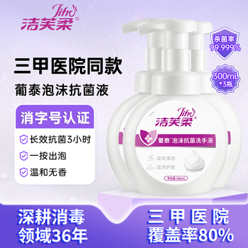 洁芙柔泡沫抗菌洗手液300mL*3 医用葡泰泡泡细腻易冲洗儿童杀菌消毒护手
