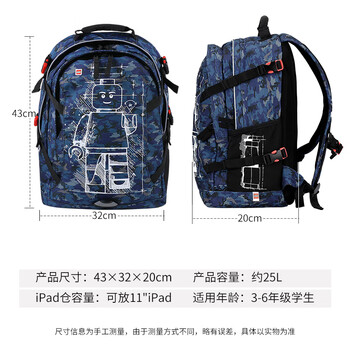 乐高(LEGO)儿童书包双肩包1-3-6年级背包轻减负夜光双仓男女蓝20041礼物