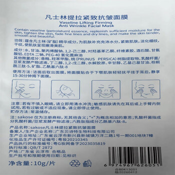 sakose凡士林提拉紧致面膜6片装V绷带面膜挂耳脸部紧致修护男女用