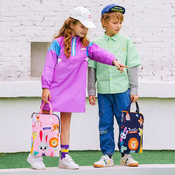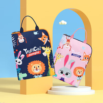 第九城堡小学生补习袋男孩轻薄手提袋书包儿童美术袋女生补课 粉色兔子