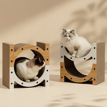 宠物生活---猫狗玩具---猫抓板福丸立式猫抓板 拼色三用款(白色拼浅木纹色)