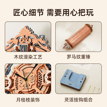 若客(ROKR)欧式挂钟 diy手工木质拼装模型积木立体拼图创意静音时钟生日礼物
