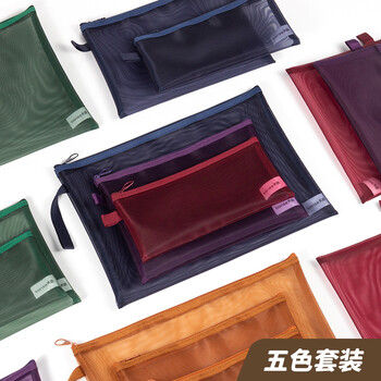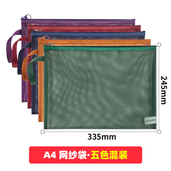 天色 复古色网纱文件袋 学生A4透明文具资料袋拉链式收纳袋档案袋文件收纳试卷收纳 A4套装-5色 TS-253