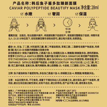 韩后鱼子酱多肽臻颜面膜28ml(5片装)
