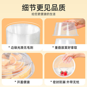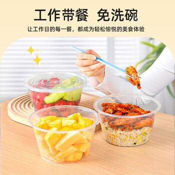 特美居(temeiju)一次性饭盒圆形透明塑料快餐盒加厚带盖打包盒餐具50套装1500型