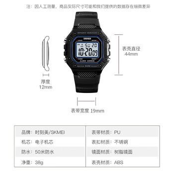时刻美(skmei)学生手表多功能初高中生青少年防水夜光闹钟电子表男小方表1496