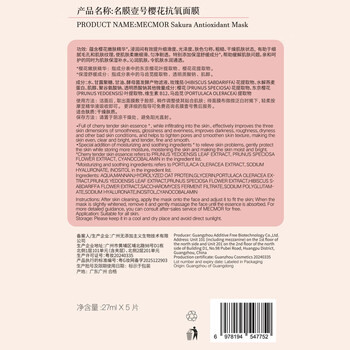 名膜壹号(mecmor)樱花面膜粉红精华保湿补水亮肤控油抚平细纹毛孔5片
