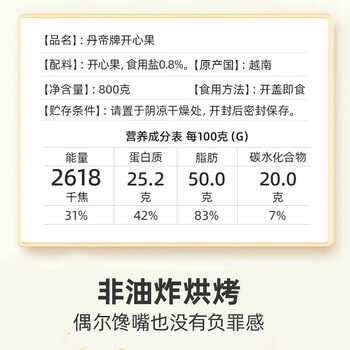 丹帝(DAN.D.PAK)【山姆同厂】美国开心果800g 无漂白大颗粒进口坚果 休闲出游零食