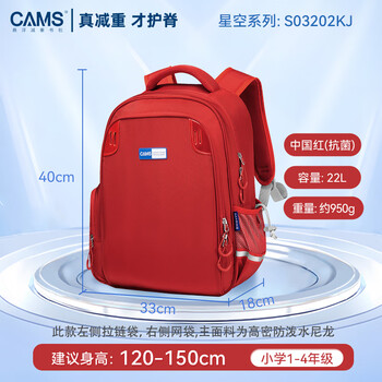 CAMS悬浮减重书包一到四减负护脊超轻便双肩 朝气红 S03202KJ 抗菌款