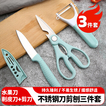 美厨(maxcook)水果刀削皮刀剪刀套装 不锈钢削皮器瓜刨刀具三件套 MCD033