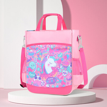 YOME小学生补习袋补课书包女孩单肩斜挎包手提袋儿童美术袋 粉色小马*1