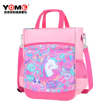 YOME小学生补习袋补课书包女孩单肩斜挎包手提袋儿童美术袋 粉色小马