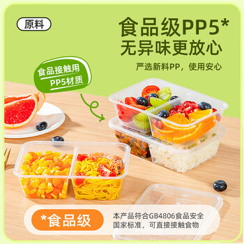 特美居(temeiju)一次性饭盒透明塑料两格餐盒加厚带盖打包盒餐具50套650型可微波
