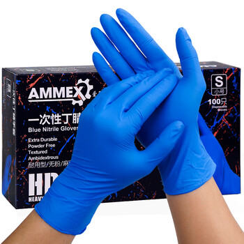 家庭清洁/纸品---清洁用具---手套/鞋套/围裙爱马斯(AMMEX)爱马斯 APFNCHD 蓝色丁腈手套 S号