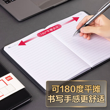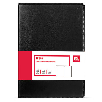 得力(deli)(deli)25K120张大号商务经典皮面本办公用品 会议记事本日记本笔记本子文具 黑BP115