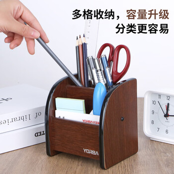 优必利 木质笔筒桌面收纳盒 办公桌整理架商务 红木纹笔筒 6005A
