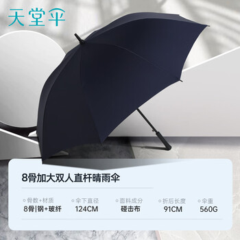 天堂 防风雨伞长柄 雨伞半自动男士商务伞超大伞面 藏青