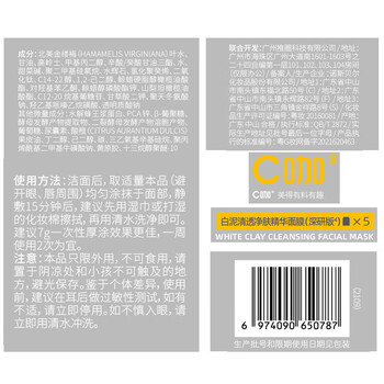 C咖白泥清透净肤精华面膜7g×5颗