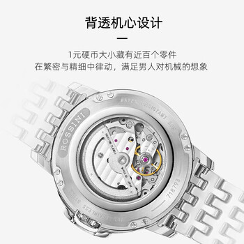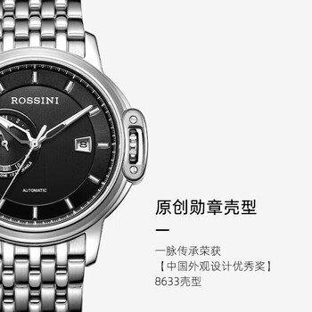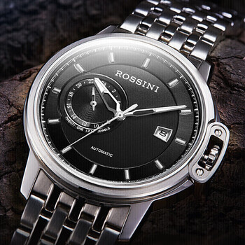 罗西尼(ROSSINI)手表男机械表勋章黑盘钢带生日礼物送男友国表商务日历 718793