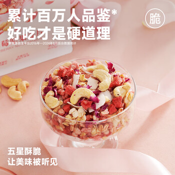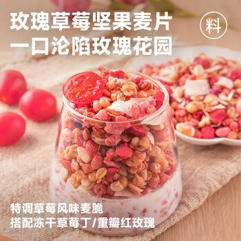 欧扎克 麦片营养早餐 即食燕麦片零食代餐冲饮谷物干吃玫瑰草莓味200g