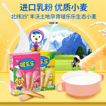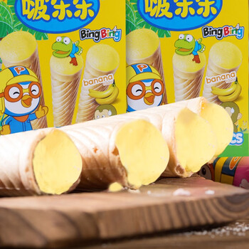 啵乐乐pororo韩国进口冰淇淋形饼干香蕉味53.4g 宝宝零食甜筒儿童饼干