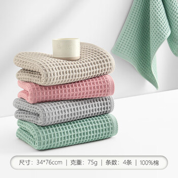 新亚毛巾纯棉华夫格成人大毛巾4条纱布吸水速干洗澡洗脸手巾34×76cm