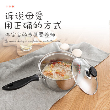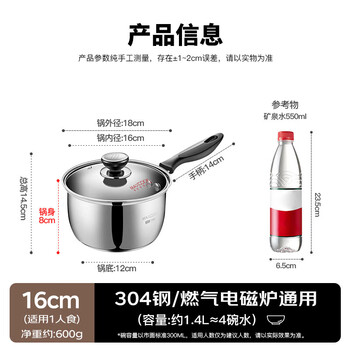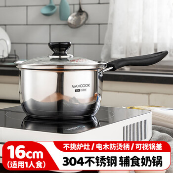 美厨(MAXCOOK)奶锅 304不锈钢奶锅汤锅16cm 泡面煮奶辅食锅 加厚复合底 LN116
