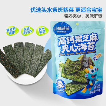 小鹿蓝蓝 黑芝麻夹心海苔脆 宝宝儿童零食黑芝麻酥脆口感即食海苔40g