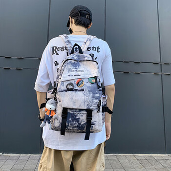 viney书包男女ins初中高中大学生简约背包潮流大容量双肩包蓝色