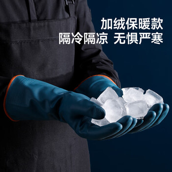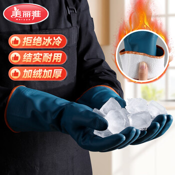 美丽雅加绒洗碗手套1双均码加长32cm冬季保暖加厚耐磨厨房家务清洁洗衣