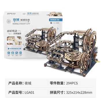 若客(ROKR)械城轨迹夜城 积木玩具立体拼图diy手工机械木质拼装模型生日礼物
