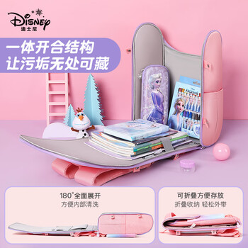 迪士尼(Disney)书包小学生1-3年级减负护脊一体开合女孩儿童双肩包艾莎公主橙色