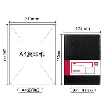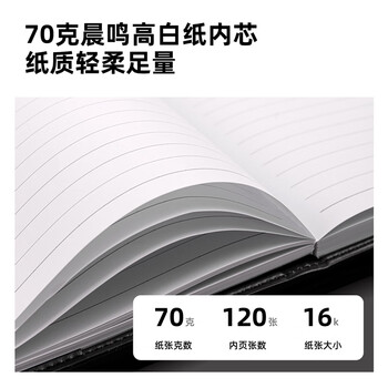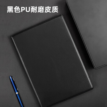 得力(deli)(deli)16K120张大号商务经典皮面本办公用品会议记事本日记本笔记本子文具黑BP114