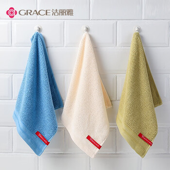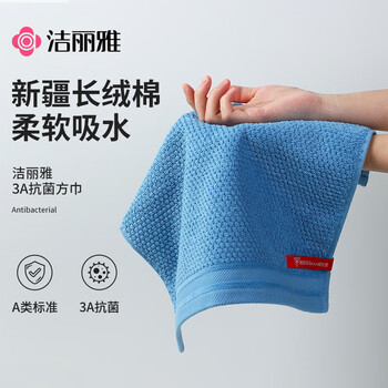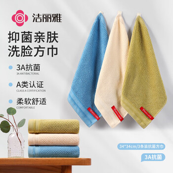 洁丽雅(Grace)抗菌方巾3条纯棉A类柔软吸水长绒棉宝宝儿童吸汗小毛巾擦汗擦手巾