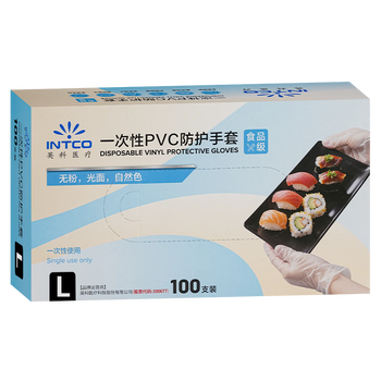 家庭清洁/纸品---清洁用具---手套/鞋套/围裙英科医疗(INTCO)英科一次性PVC防护手套