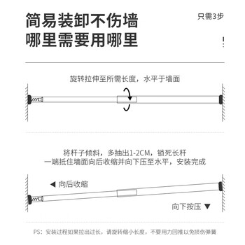 RIDDER笍德 浴帘杆伸缩杆免打孔窗帘晾衣杆100-185cm