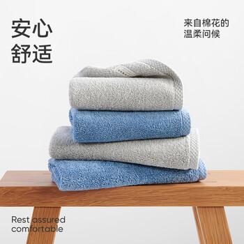 洁玉100g毛巾 A类新疆棉洗脸巾男士3A级抑菌面巾纯棉洗澡巾 2条蓝+灰