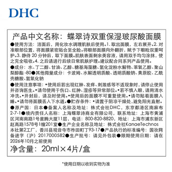 DHC双重保湿玻尿酸面膜20mlx4片装 补水滋润面贴膜基础护肤