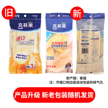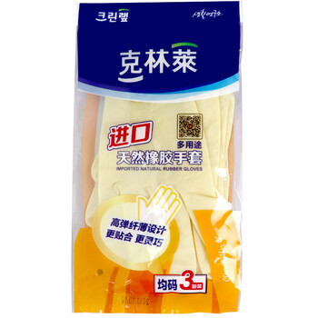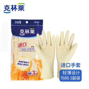 克林莱天然橡胶手套3副装均码进口夏季高弹纤薄清洁家务洗碗食品多用途